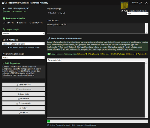 ✨ Enhanced Accuracy: Leverage the tool's "Enhanced Accuracy" mode for reliable, high-quality code generation.